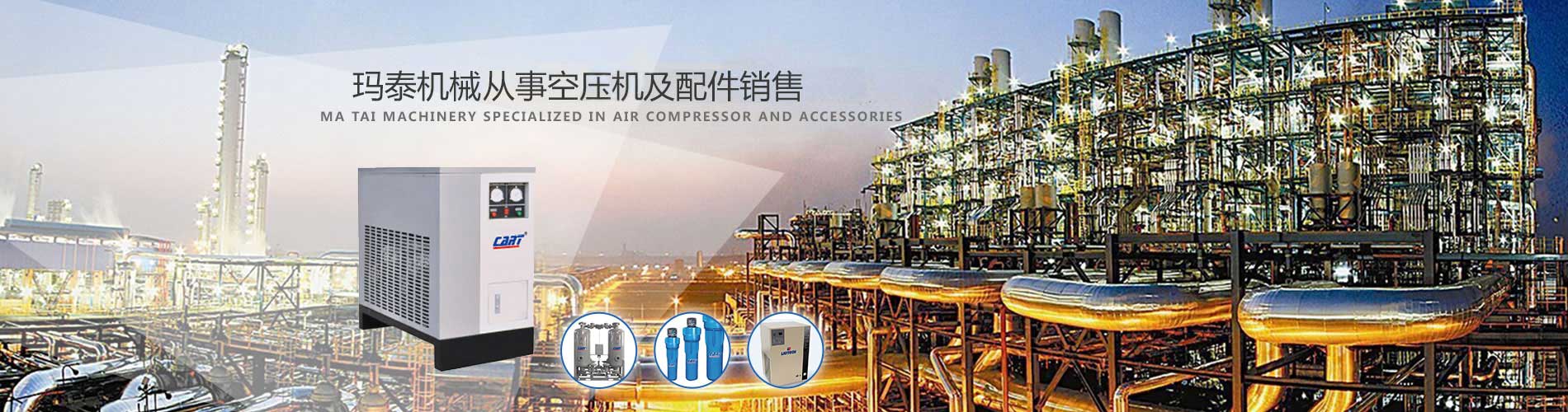 山西瑪泰機械設備有限公司是位于山西省太原市的一家螺桿空氣壓縮機代理服務公司。主要業務范圍是壓縮機設備及配件、機電設備及配件、空氣凈化設備、工業潤滑油、制冷設備銷售;空壓機機械設備及電器元器件技術咨詢、維修。主要產品:美國卡爾特空壓機系列產品、變頻螺桿空氣壓縮機、固定式螺桿空氣壓縮機、滑片式空氣壓縮機、移動式螺桿空氣壓縮機、低壓螺桿空氣壓縮機、全無油螺桿空氣壓縮機、冷凍式干燥機、吸附式再生干燥機、溶解式干燥機壓...